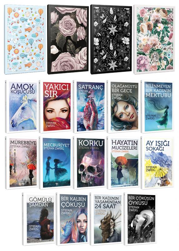 14 Stefan Zweig ve 4 Çiçekli Çizgili Defter -Set-1