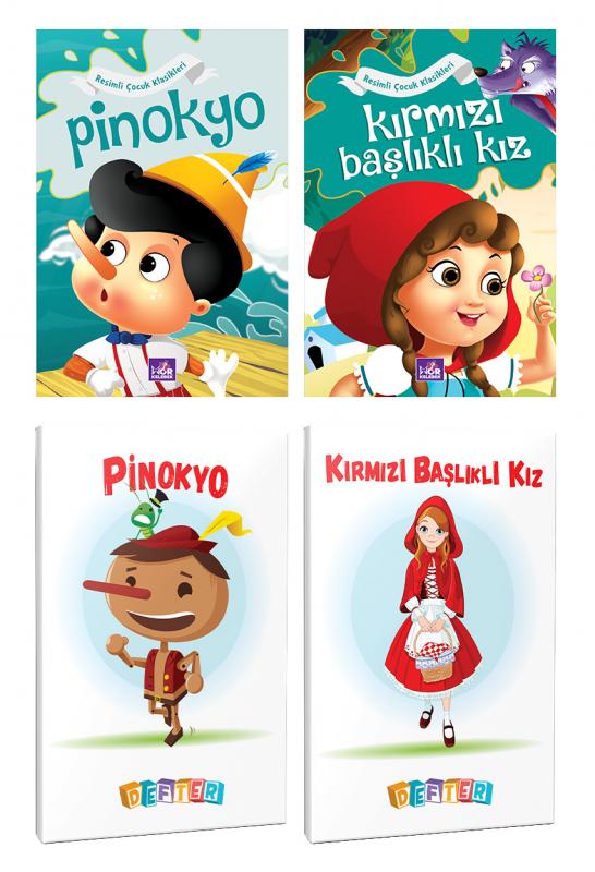 2 Renkli Dünya Masalı ve 2 Masal Karakteri Temalı 64 Sayfa 13,5x19,5 Okul Defteri Seti 1