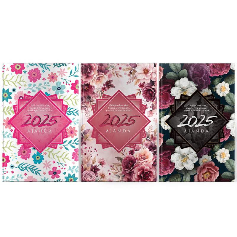2025 Motivasyonel 3'lü Ajanda Seti İlk Bahar - Pembe Düşler - Ay Bahçesi