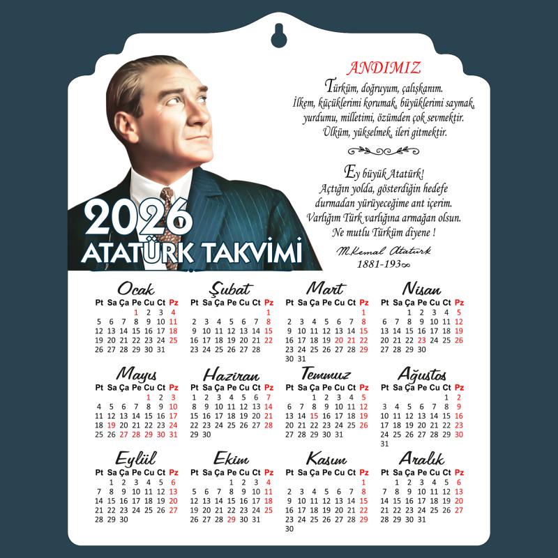 2026 Ahşap Atatürk Takvimi Ayyıldız