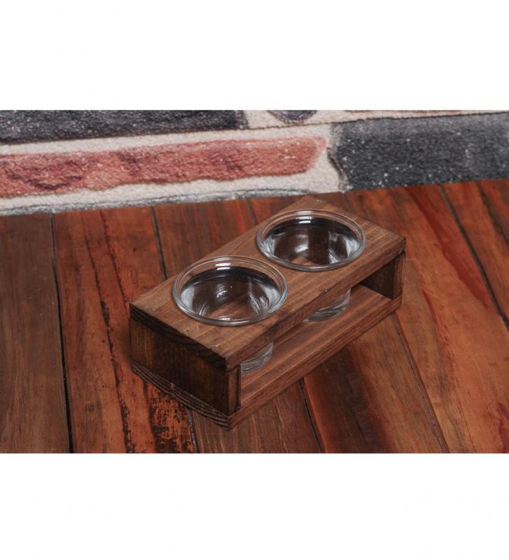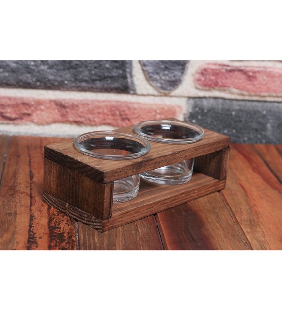 2'Li Ahşap T-Lıght Cam Mumluk HK0227