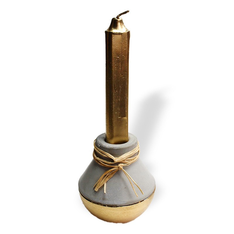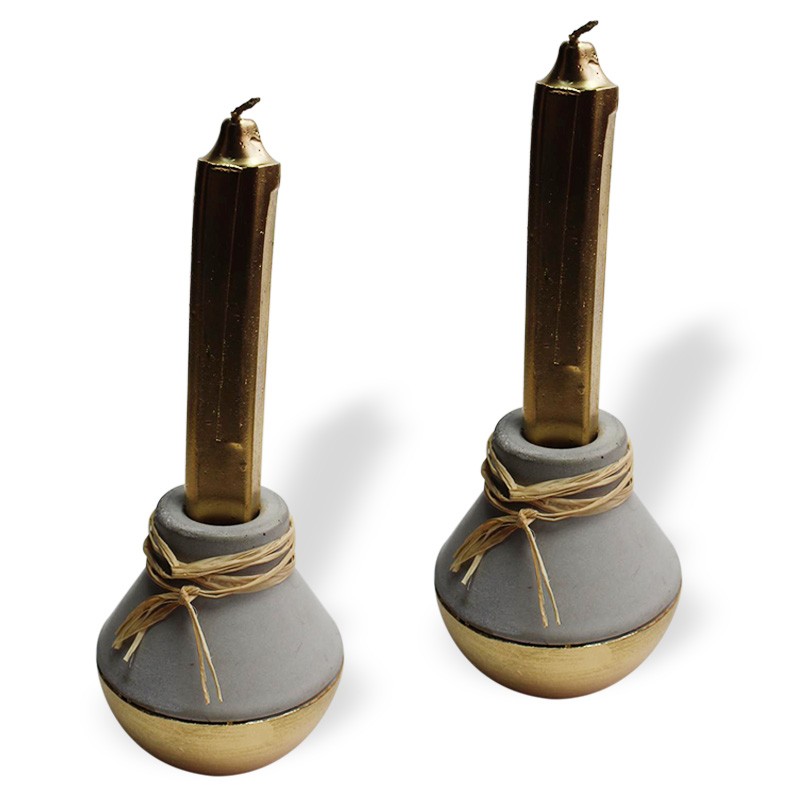 2'li Altın Topaç Beton Mumluk ,NOT: Ürüne mumlar dahil değildir.