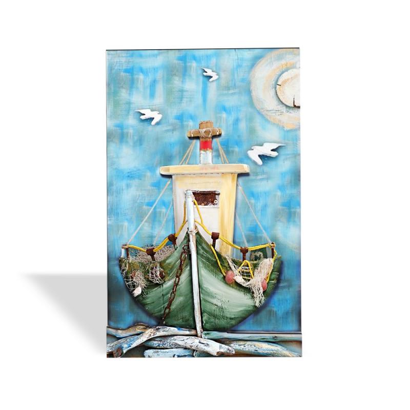 3D Ahşap Kabartma Tablo Balıkçı Teknesi ve Martılar HK1344