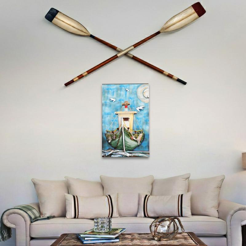 3D Ahşap Kabartma Tablo Balıkçı Teknesi ve Martılar