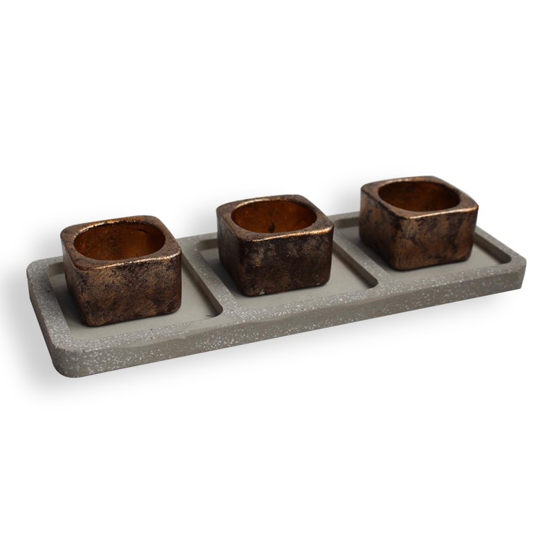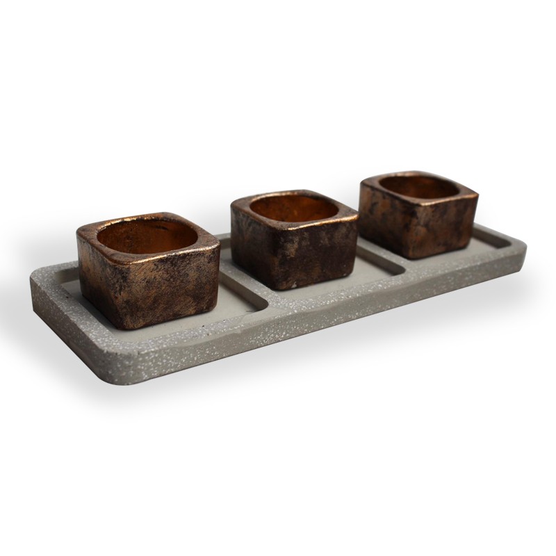 3'lü Beton Tepsili T-Light - Bakır Rengi
