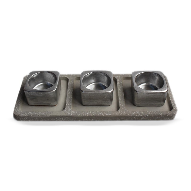 3'lü Beton Tepsili T-Light - Gümüş Rengi