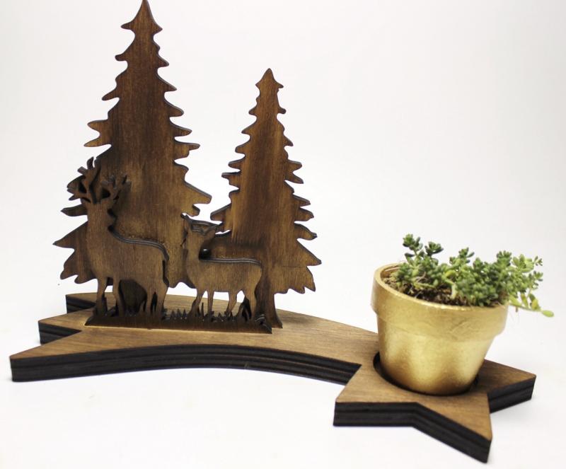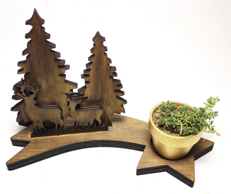 Ahşap Ağaç, Geyik ve Kayan Yıldızlı Beton Saksılık