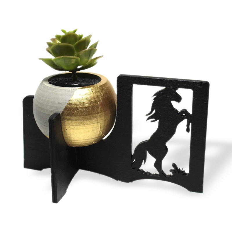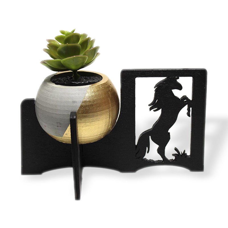 Ahşap At Figürlü Küre Beton Saksı,NOT: Ürüne bitki dahil değildir.