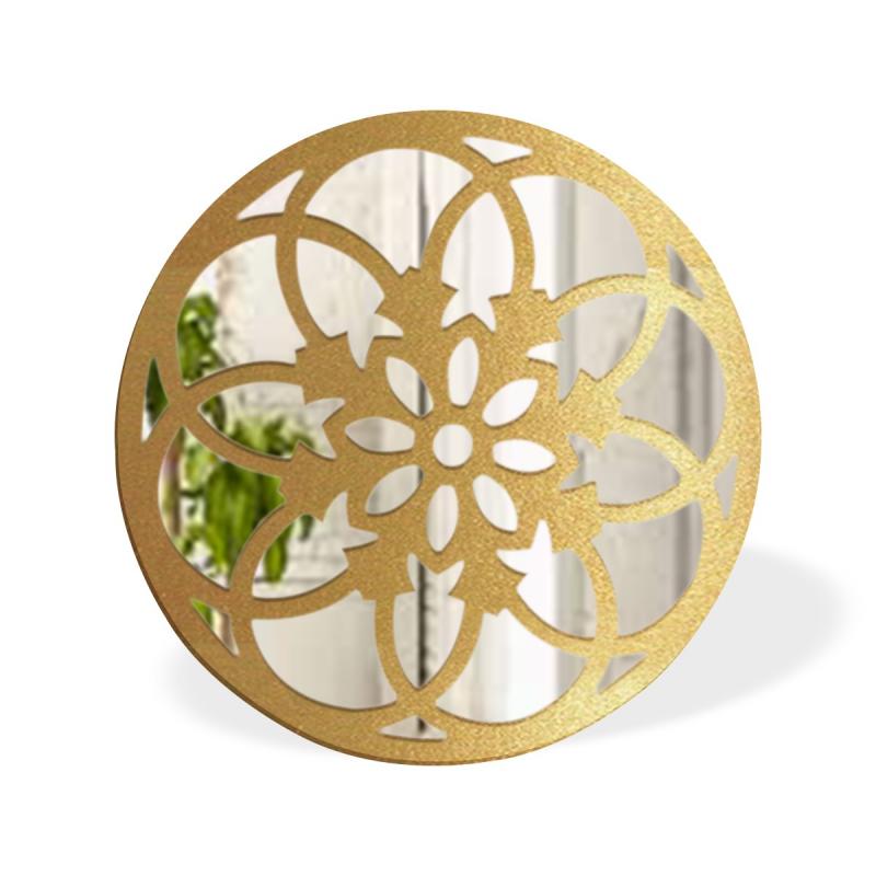 Ahşap, Desenli Yuvarlak Akrilik Ayna ,Altın Varaklı 50 cm