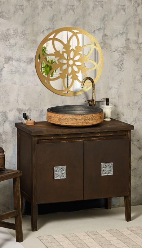 Ahşap, Desenli Yuvarlak Akrilik Ayna ,Altın Varaklı 50 cm HK0119