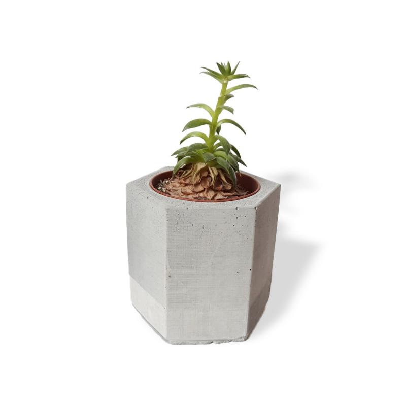 Altıgen Silindir Beton Saksı - Büyük Boy ,NOT: Ürüne bitkiler dahil değildir.