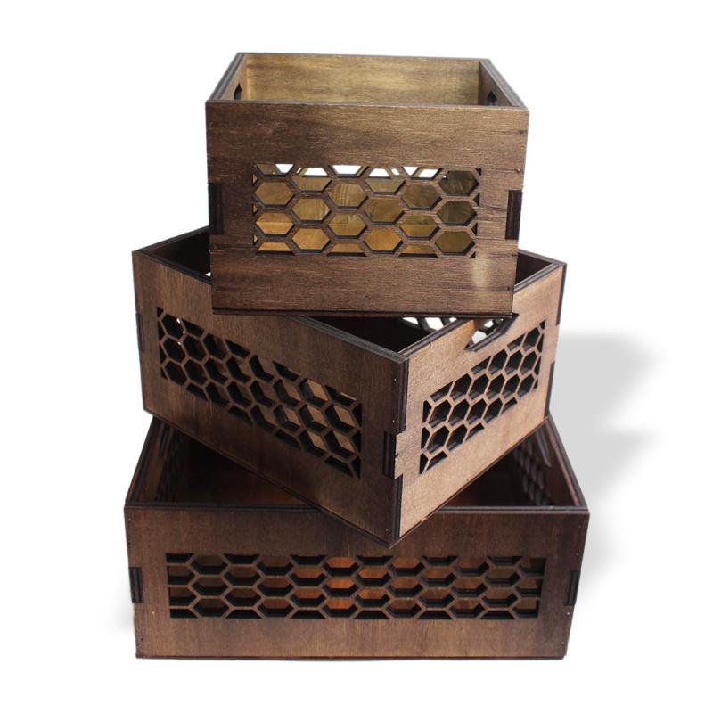 Arı Peteği Desenli 3 Boy Kasa Seti