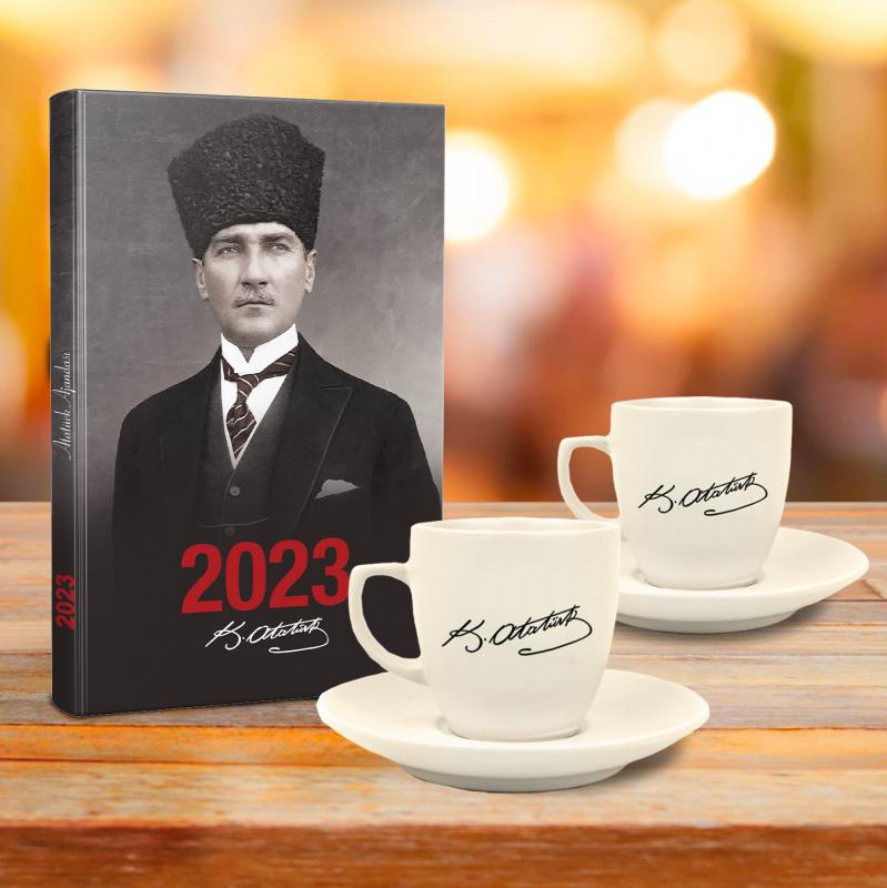 - Atatürk Hediye Seti - 2li Atatürk İmza Fincan - Kalpaklı