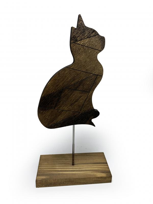 Ayaklı Ahşap Tonlamalı Kedi