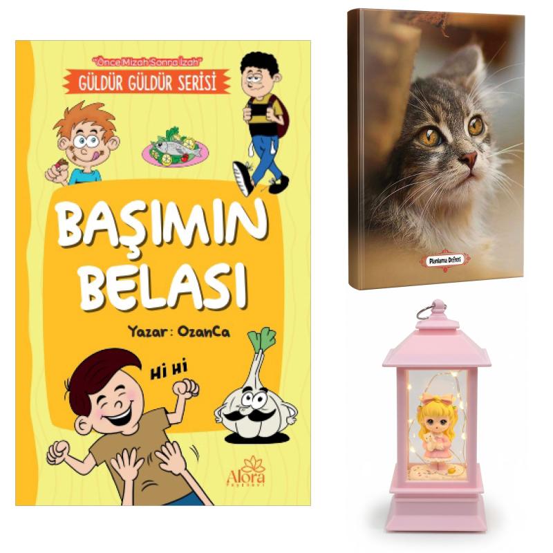 - Başımın Belası - Minik Kedi Planlama Defteri ve Kedili Kız Fener Tipi Işıklı Kar Küresi