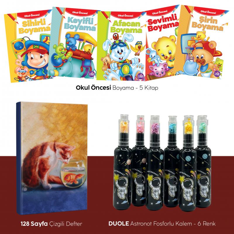 Beşli Boyama Kitabı - Fosforlu Kalem DL-2028A - Kedi Rüyası Defter