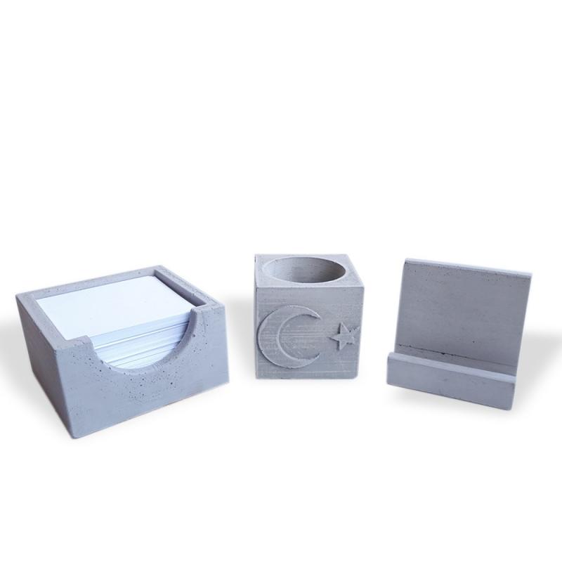 Beton Ofis Seti - Telefon ve Kartvizitlik, Ay Yıldız Beton Saksı, BloknotlukHK1702