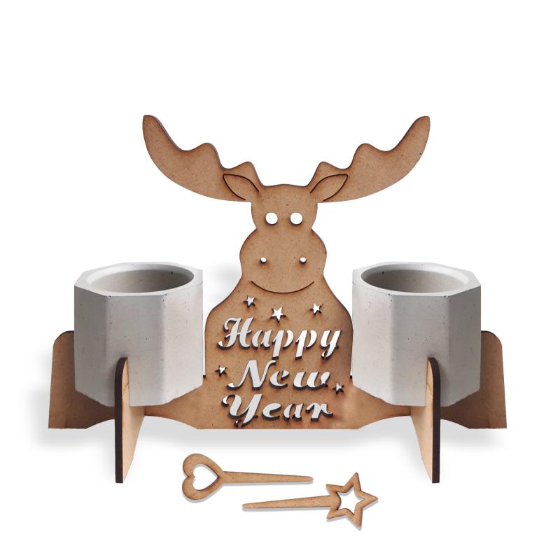 Beton Saksılı Sevimli Geyik Desenli Ahşap Stand HK1682