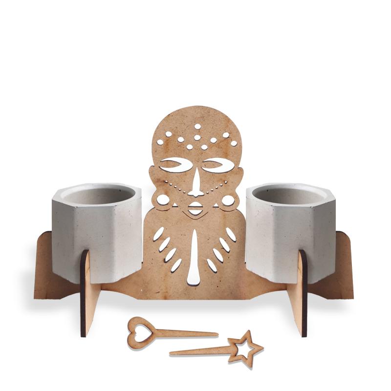 Beton Saksılı Zenci Savaşçı Desenli Ahşap Stand Model 2 HK1688