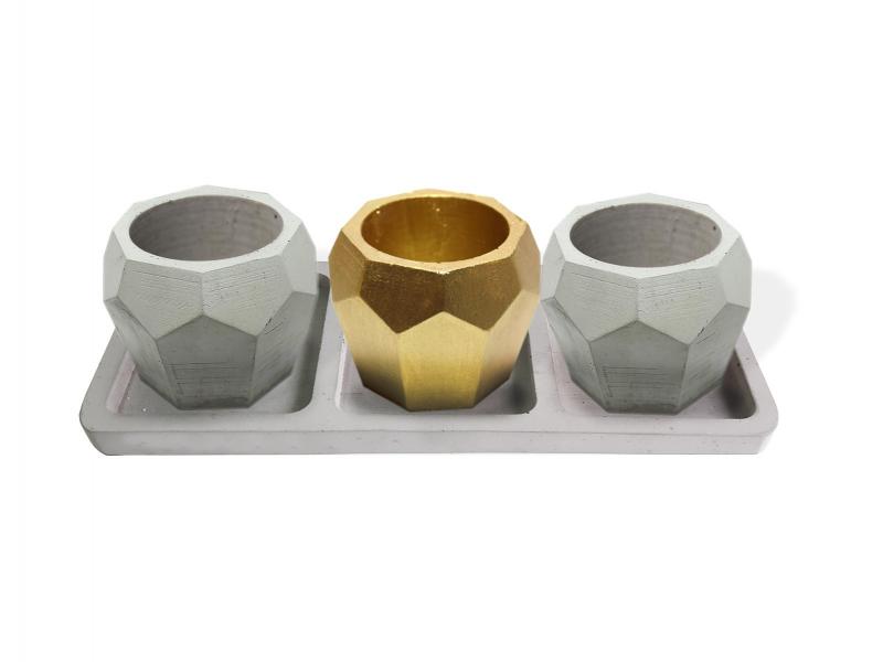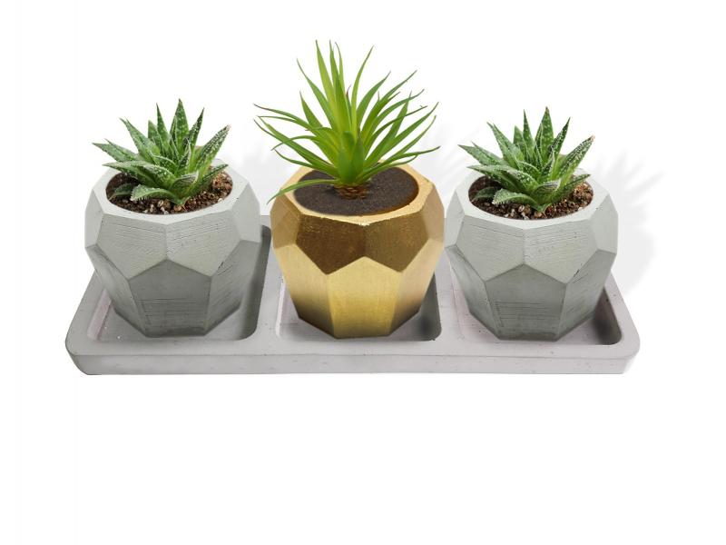 Beton Tepsili 3'lü Elmas Beton Saksı SetiHK1632