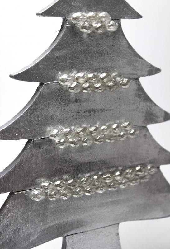 Cam Boncuklu Ahşap Çam Ağacı - Gümüş