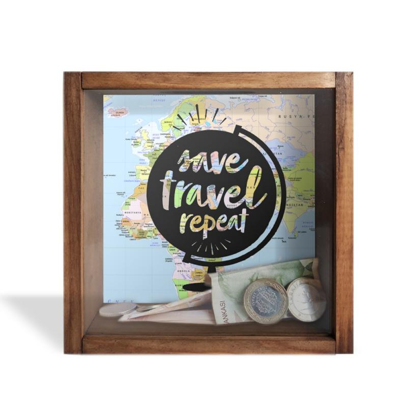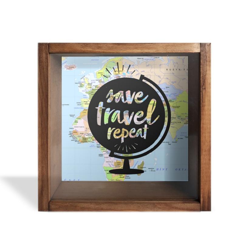 Camlı Ahşap Kumbara Dünya Turu HK0662