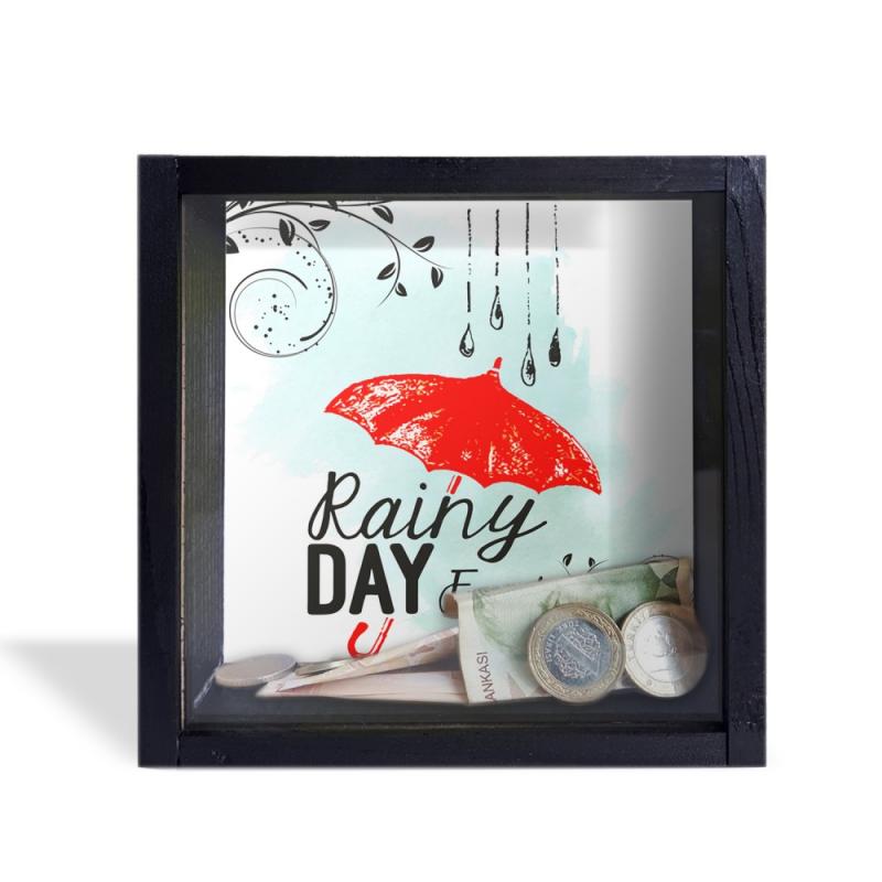 Camlı Ahşap Kumbara Kırmızı Şemsiyeli Siyah