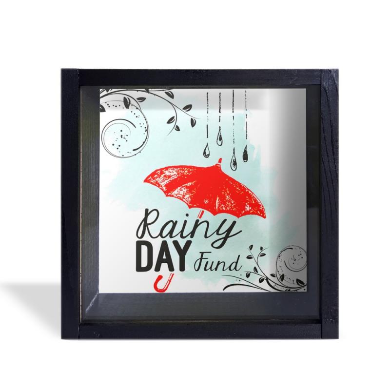 Camlı Ahşap Kumbara Kırmızı Şemsiyeli Siyah HK0664-0002