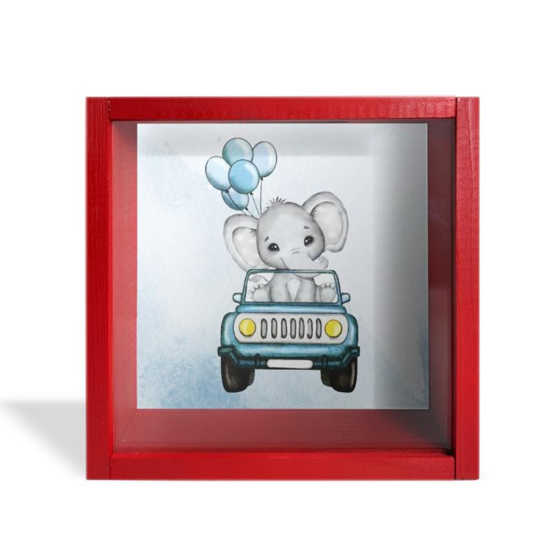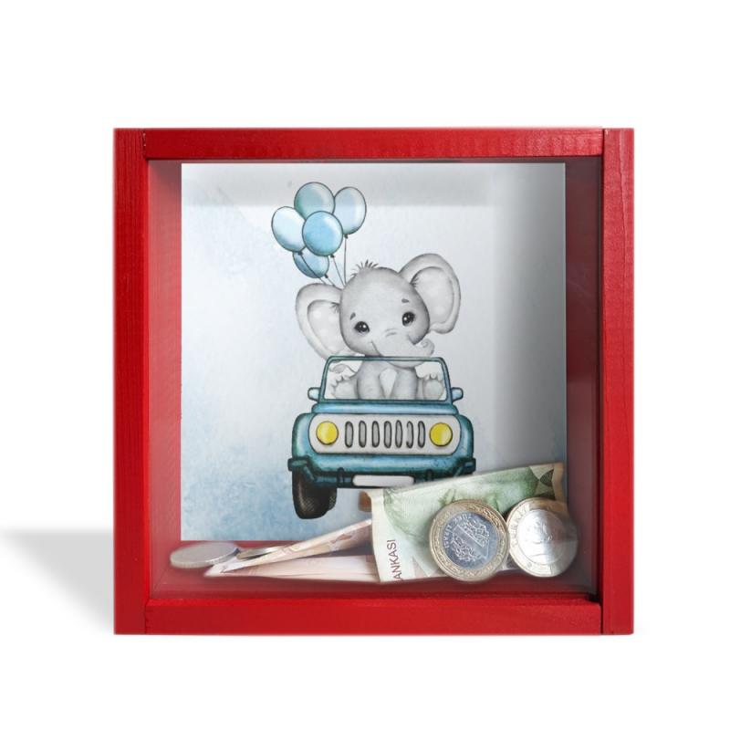 Camlı Ahşap Kumbara Mavi Arabalı Fil Kırmızı HK0659-0011