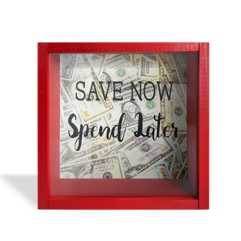 Camlı Ahşap Kumbara Save Now Kırmızı