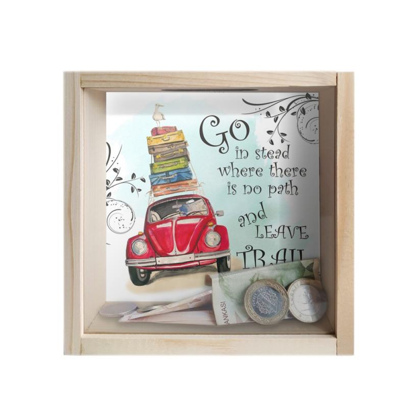 Camlı Ahşap Kumbara Tatil Ham Ahşap HK0661-HM