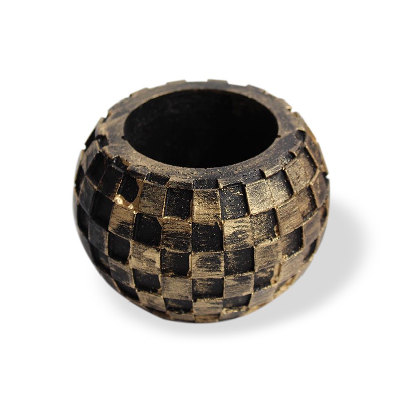 | Damalı Küre Beton Saksı, Siyah Altın Varaklı |