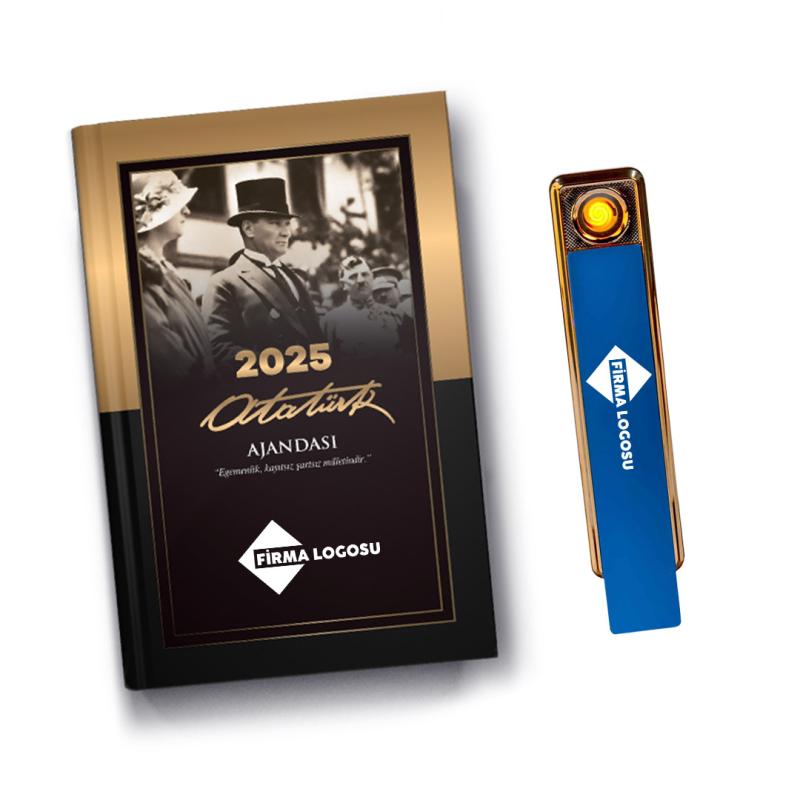 Firmalara Özel 2025 Atatürk Ajanda Asalet ve USB Şarjlı Çakmak Minimum Sipariş 10 Adet