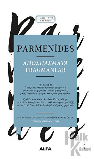 MÖ 6. yüzyılın sonlarında İtalya’nın güneyinde Foçalı göçmenler tarafından kurulan Elea kentinde dünyaya gelir Parmenides. MÖ 5. yüzyılın ortalarında yine aynı kentte hayata gözlerini yumduğunda ise, ardında felsefe tarihinin seyrini tümden değiştirecek bir eser bırakır. Elinizdeki kitapta çevirisi sunulan bu eser geleneksel olarak Doğa Üzerine başlığıyla anılsa da, Parmenides aslında diğer Sokrates-öncesi filozoflardan farklı bir çizgide ilerler, varlık sorununu felsefenin gündemine, hatta felsefi tartışmaların başköşesine yerleştirir. Felsefe tarihinde yarattığı kırılma, başta Zenon ve Empedokles olmak üzere pek çok filozofun görüşlerini derinden etkiler, hatta Platon ve Aristoteles’in varlık anlayışlarında yankı bulur. Günümüzde halen tartışmaların odağında yer alan bu eseriyle Parmenides, varlık felsefesinin en temel metnini insanlık tarihine armağan eder.