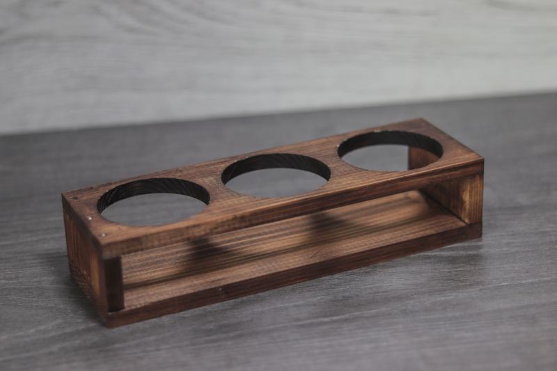 Ürün içeriği: 3 adet beton sukulent saksısı + ahşap stand