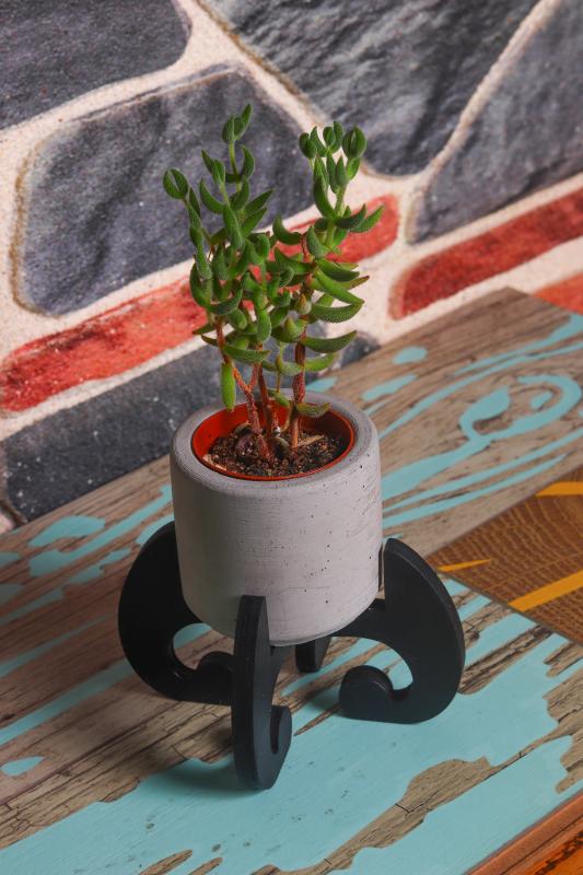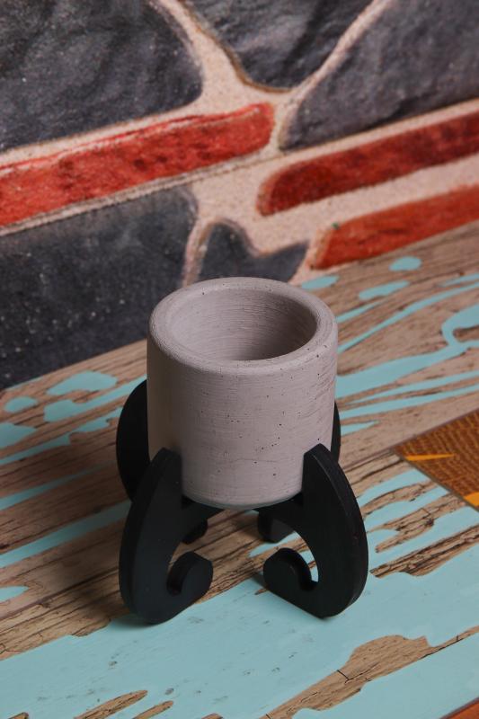 Siyaha boyanmış şık ahşap altlığıyla gelen silindir şeklindeki beton saksı içinde şık bitkiler yetiştirebilirsiniz Masalarınızı renk katacak.