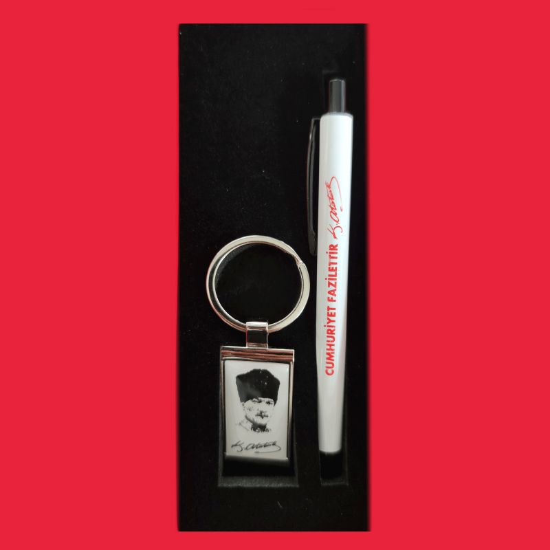 İkili Cumhuriyet Fazilettir Kalem Seti - Tükenmez Kalem ve Anahtarlık