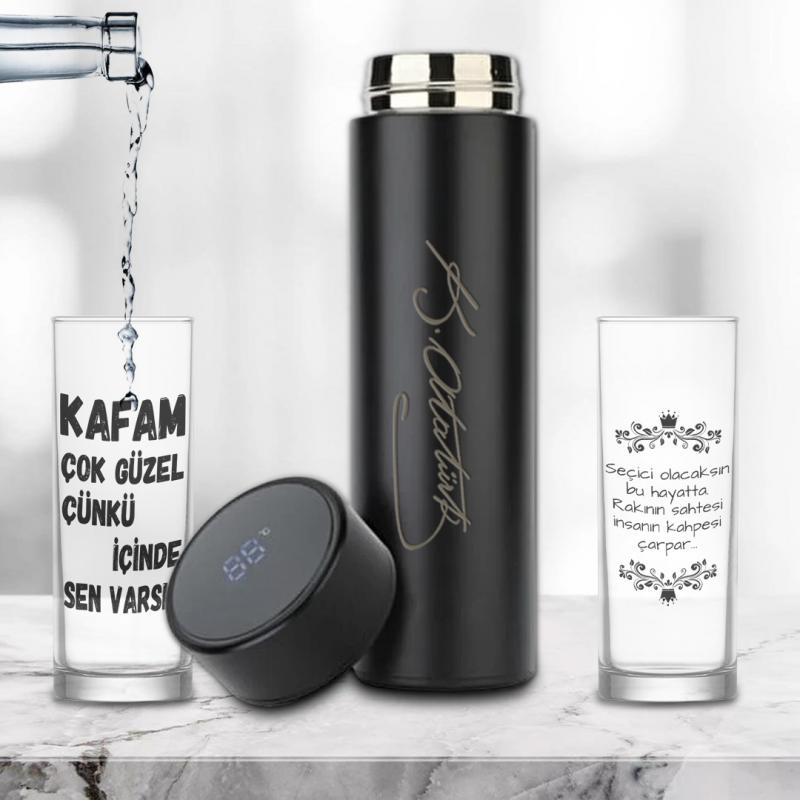 İkili Eğlenceli Meşrubat Bardağı - Atatürk İmzalı Dereceli Termos