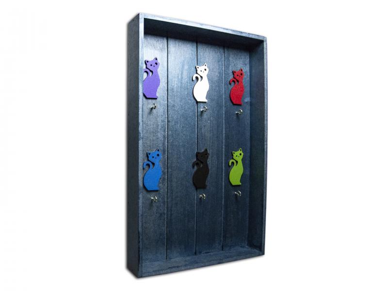 Kedi Figürlü 6'Lı Anahtarlık Kutusu, Mavi