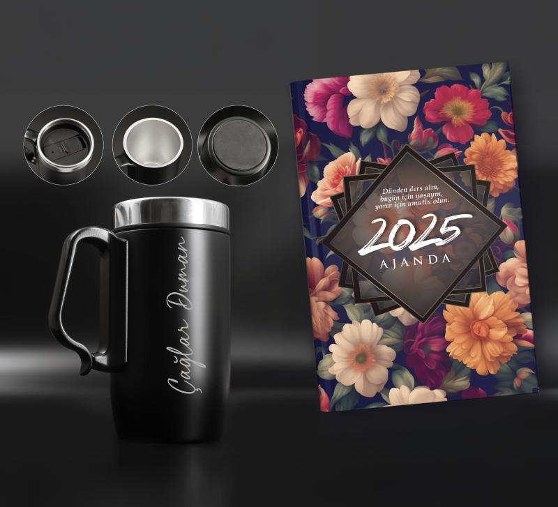 Kişiye Özel Kulplu Termos ve 2025 Ajanda - Günbatımı