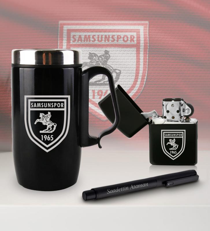 Kişiye Özel Taraftar Seti - Termos Kupa Bardak - Benzinli Çakmak - Metal Roller Kalem - Samsunspor