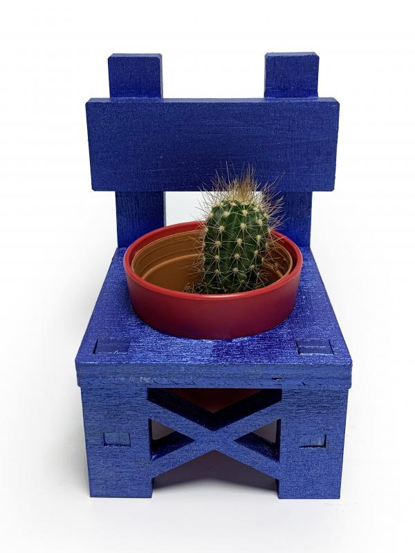 Lora Sandalye Mavi Çiçeklik; Saksı ve Kaktüs Fiyata Dahil Değildir.