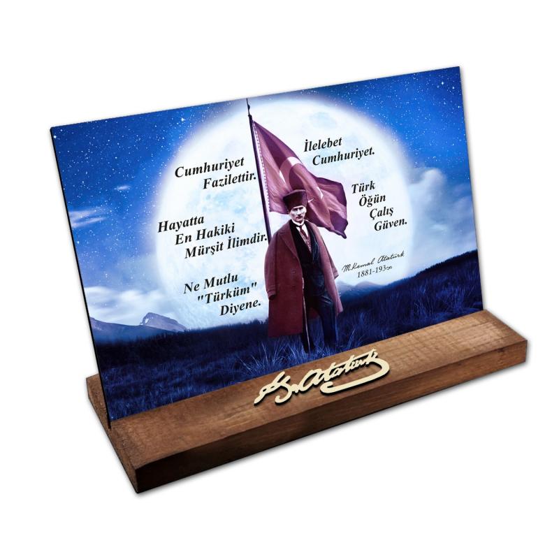 Masaüstü Ahşap Tablo - Atatürk İmzalı ve Resimli Model 3HK2510-03