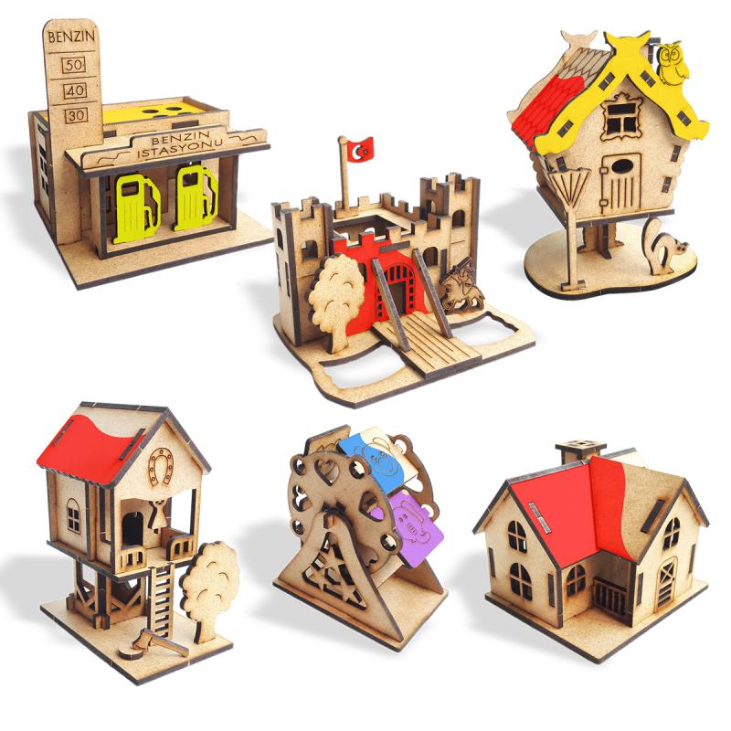 5 Adet birbirinden güzel ahşap maketleri istediğiniz gibi boyayabilirsiniz.
