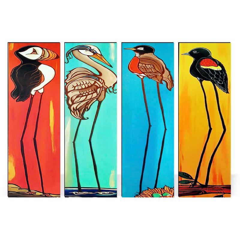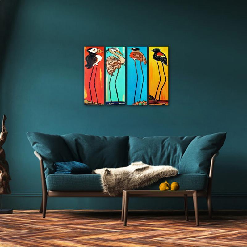 Renkli Kuş Baskılı 4'lü Ahşap Tablo Model 2