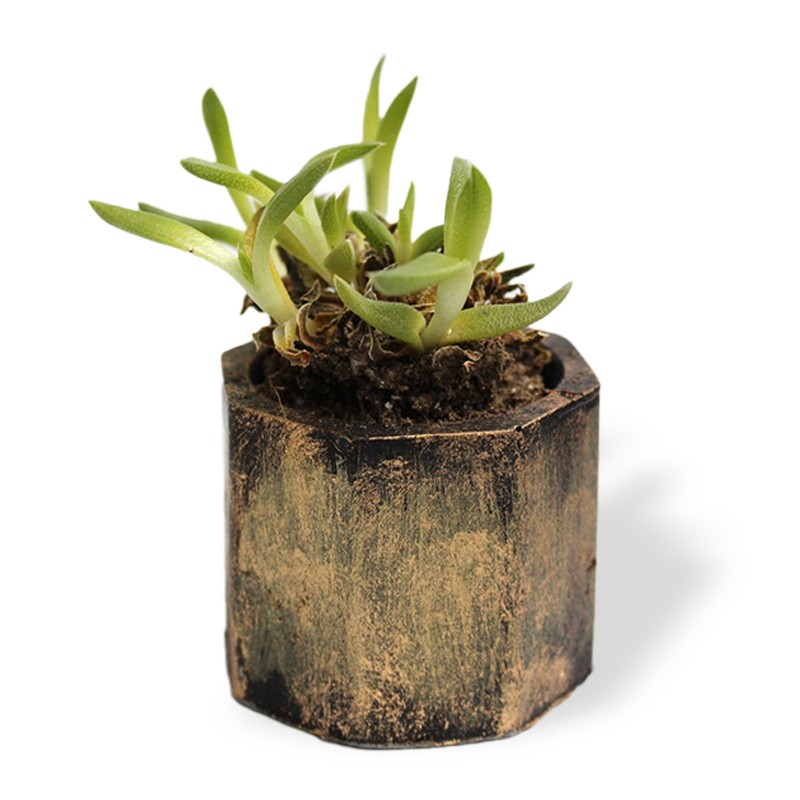 Sekizgen Silindir Beton Saksı, Siyah Üstüne Altın Varak - Küçük Boy