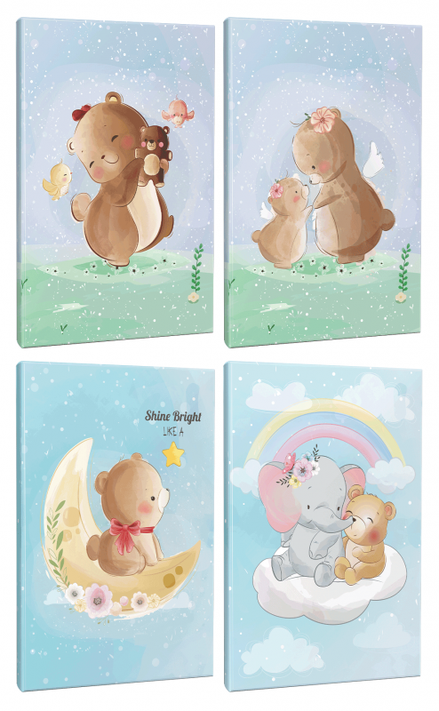 Sevimli Ayıcıklar 4lü 64 Sayfa Çizgili Okul Defteri Seti -2