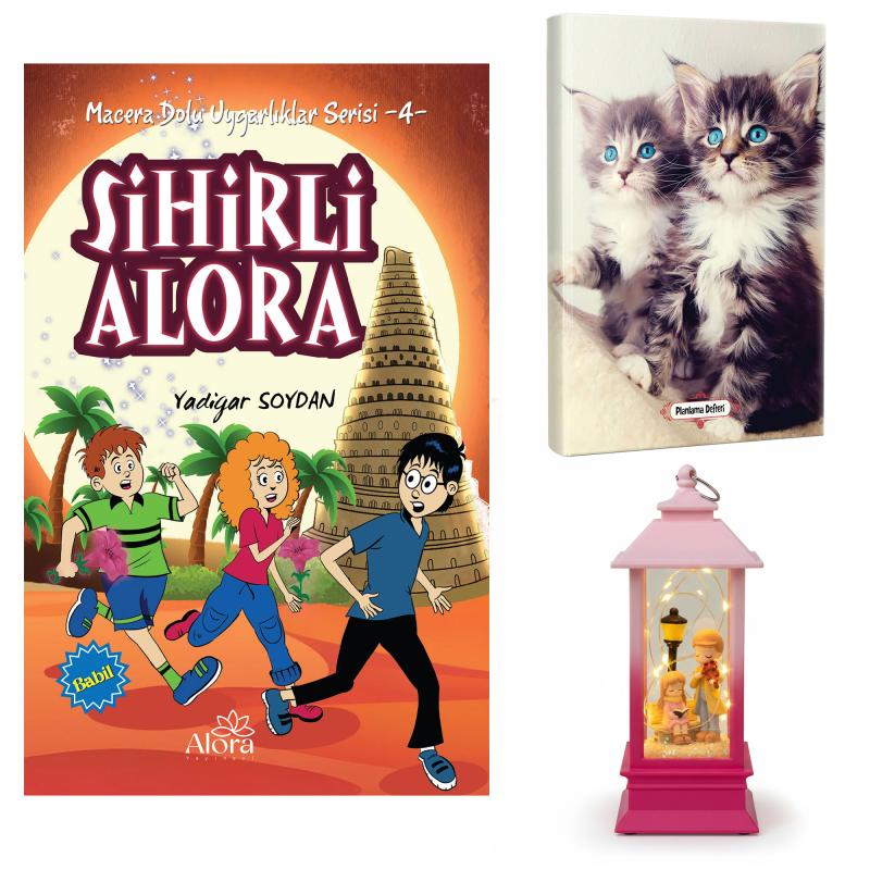 - Sihirli Alora - Maviş Kediler Planlama Defteri ve Melodi ve Huzur Fener Tipi Işıklı Kar Küresi
