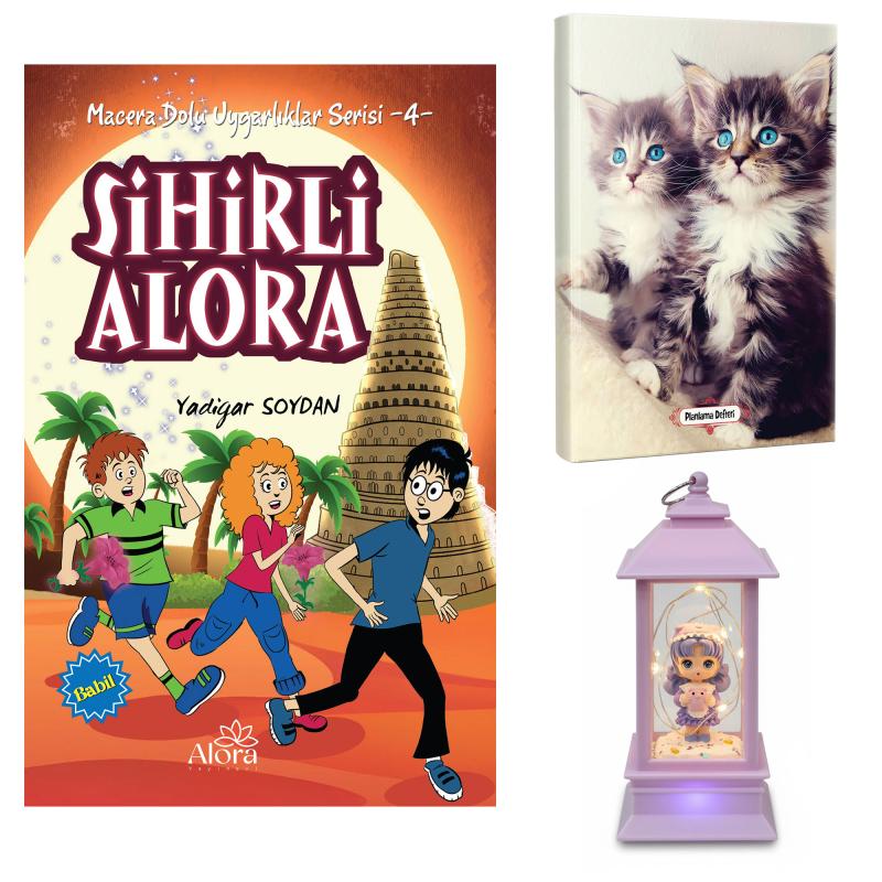 - Sihirli Alora - Maviş Kediler Planlama Defteri ve Oyuncak Domuzcuklu Kız Fener Tipi Işıklı Kar Küresi