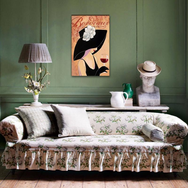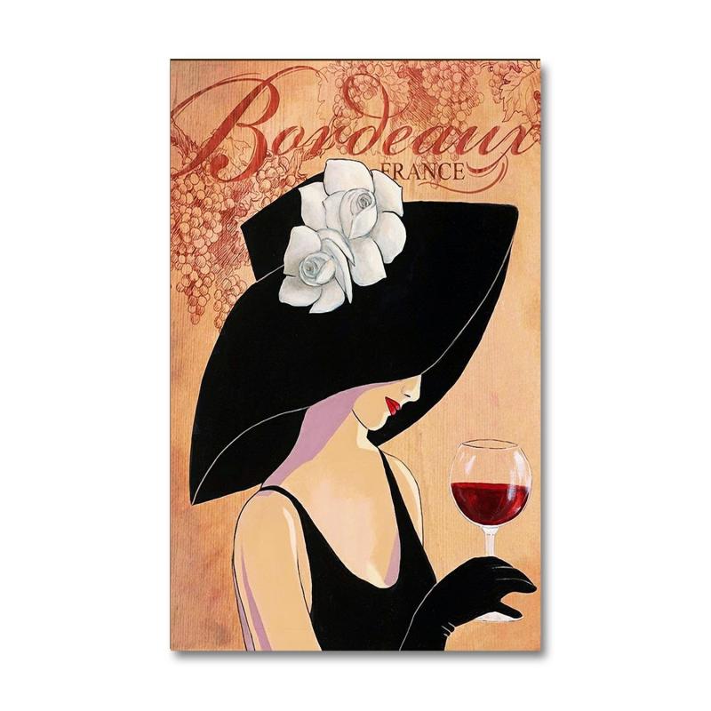 Vera Beyaz Gül Şapkalı Kadın Baskılı Retro Ahşap TabloHK1308